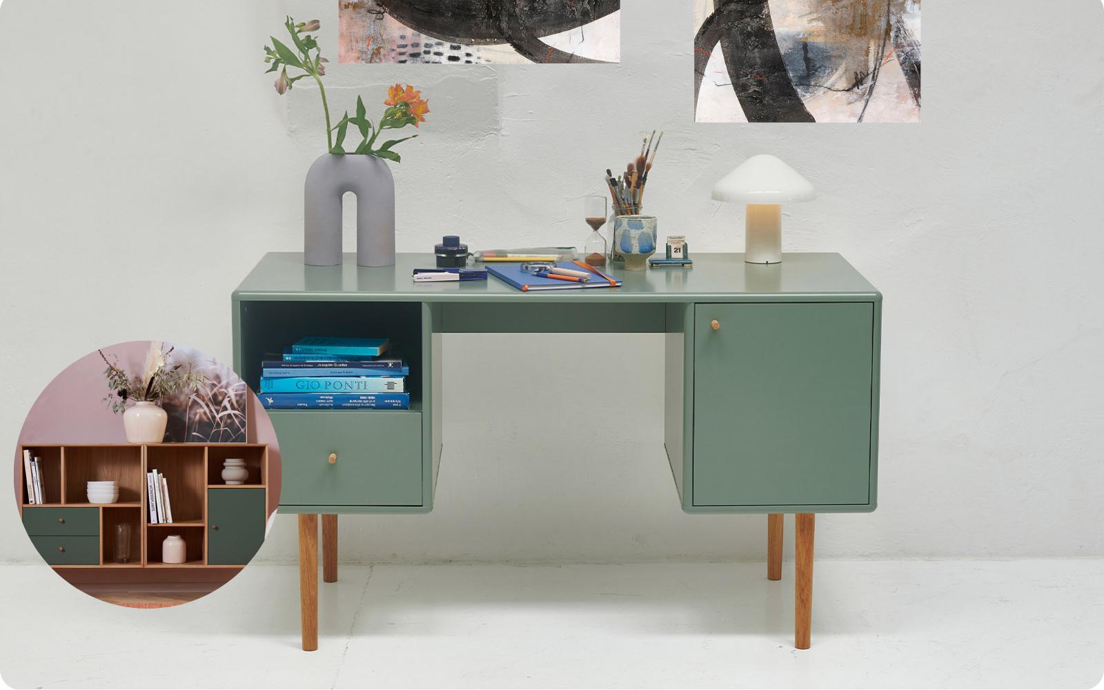 Er du mere til spræl og farver? Det er også helt fair! Et farverigt hjemmekontor kan give dig masser af energi og mere kreativitet💚Du kan vælge et skrivebord, der er mere friskt i farven og mix dem med sjove plakater eller gallerier. Er du til mere spræl og er mere vovet – megafedt! Her kan du i så fald overveje nogle af vores bogkasser eller reoler i en farve. På denne måde får du også mere opbevaring🩷